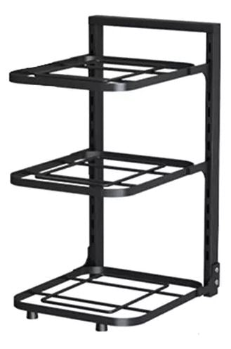 1pc Adjustable 3-Tier Black Stainless Steel Pot Rack - Space-Saving Kitchen Organizer with Multi-Shelved Storage Solution, Ideal for Home & Restaurant