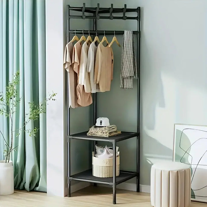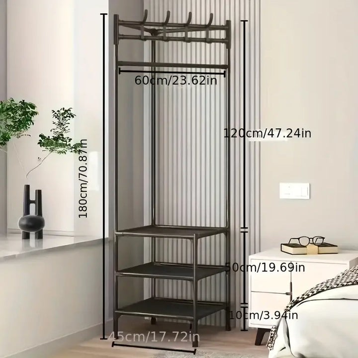 1pc Corner Coat Rack, Free Standing Coat Rack, With 3 Layers Storage Shelves And 4 Double Hooks, Living Room, Bathroom, Hallway Shoe Rack Organizer
