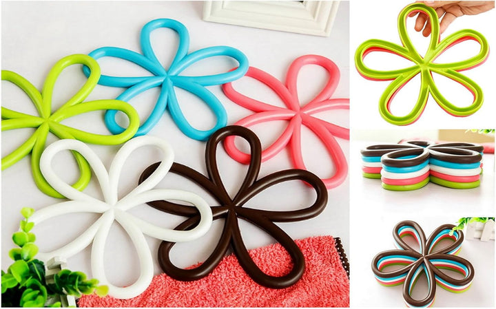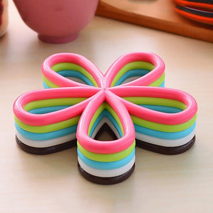 1Pc Flower Shape Anti-Slip Pot Holder, Dish Place-mat Cup Coaster Kitchen Dining Table Silicone Heat-Proof Mat
