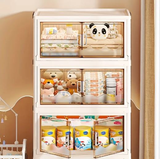 1Pc Multifunctional Freestanding Double-Door Plastic Organizer Shelf