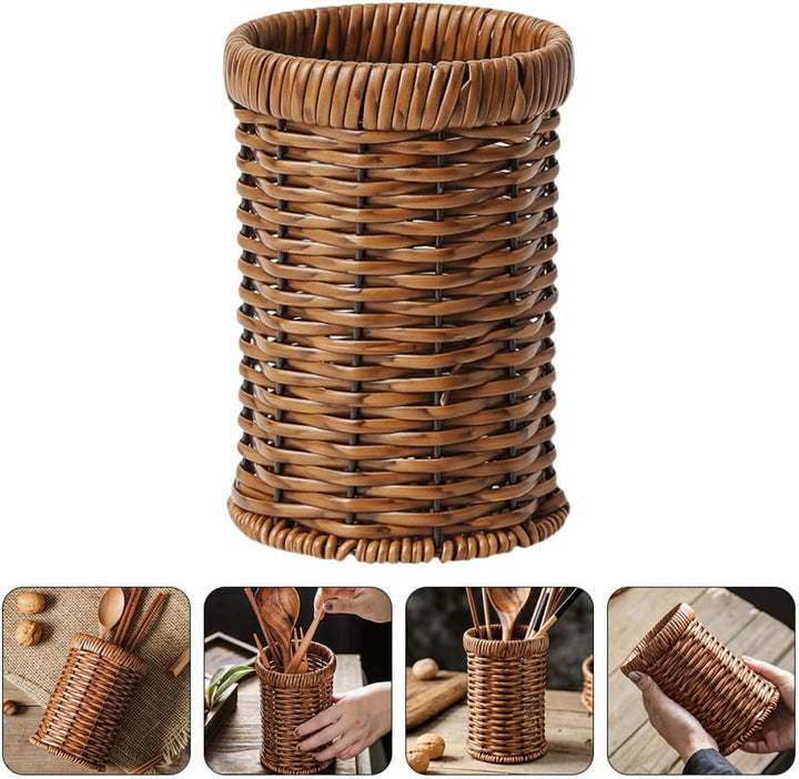 1Pc Rattan Woven Tableware Creative Stationery, Kitchen Accessories Holder