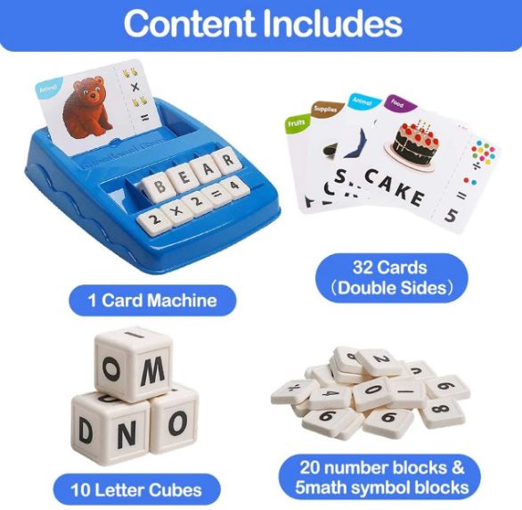 - Delicate Package: Each set of educational game comes with 1 matching tray, 32 double-sided flashcards (total 64 words), 10 letter cubes, 20 number blocks, 5 mathematical symbol blocks, which is the perfect combination of letters and numbers, bringing children a fun experience.