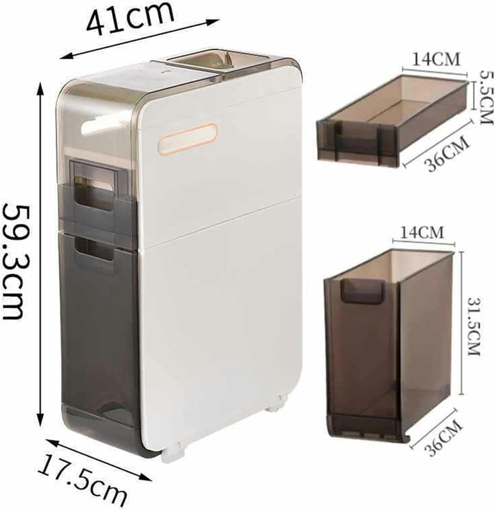 - The tall slim bathroom cabinet has a paper-drawing design,no need to open the cover to take out the paper towels,and becomes a practical toilet paper storage cabinet.