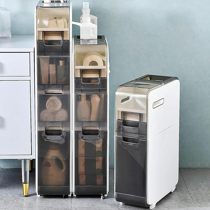- This multifunctional vertical storage tower is deep and tall, which can easily optimize small spaces and gaps next to sinks, toilets, washing machines, refrigerators, sofas or beds.