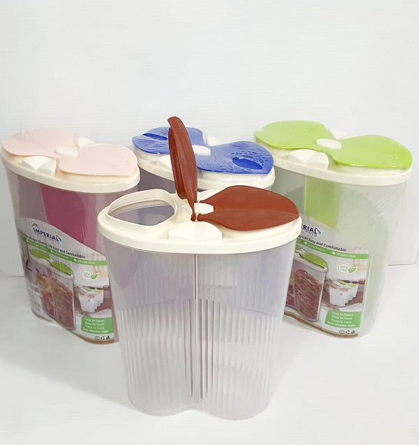 2 Partition Chamber Section Plastic 2.5L Air Tight Storage Box/ Grain Pulses Flour Rice Pasta Cereal Dry Food Snacks Container
