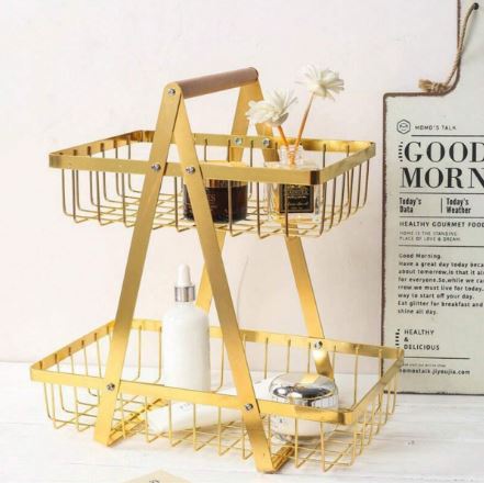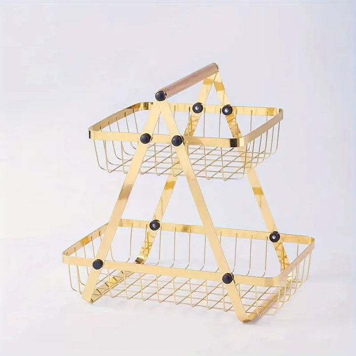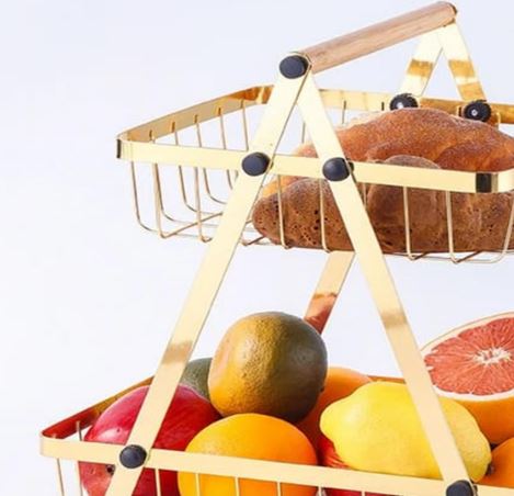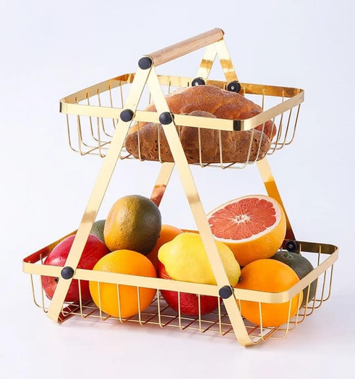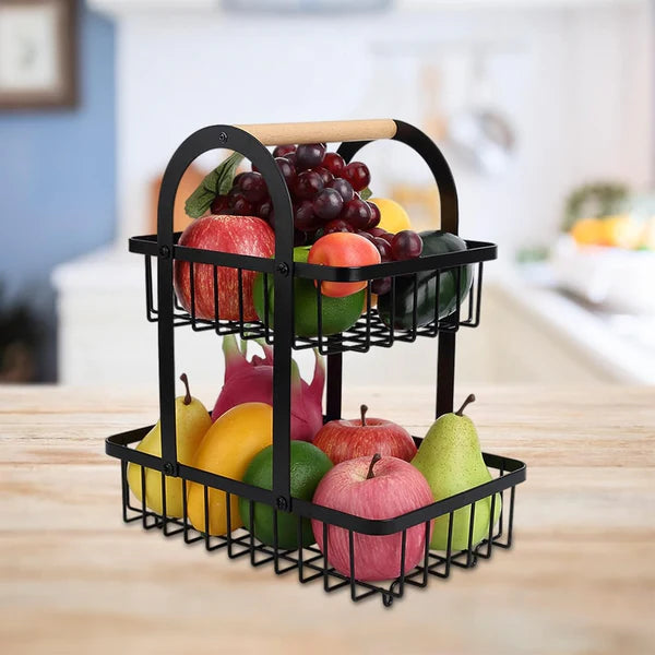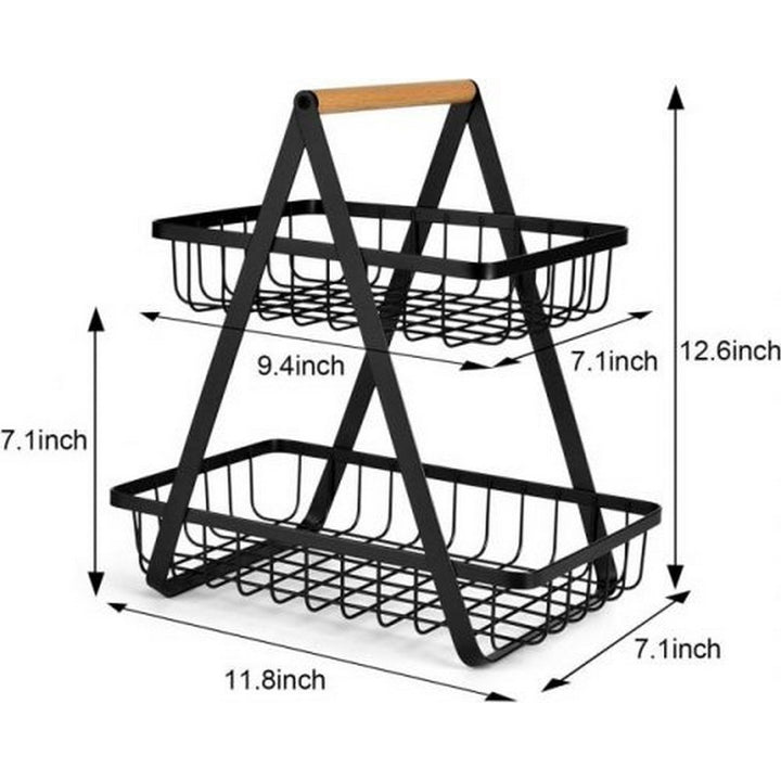 - This 2-Tier Countertop Basket is made of premium metal with portable wooden handle for long-lasting beauty even under rigorous use.It is easy to clean and assemble.