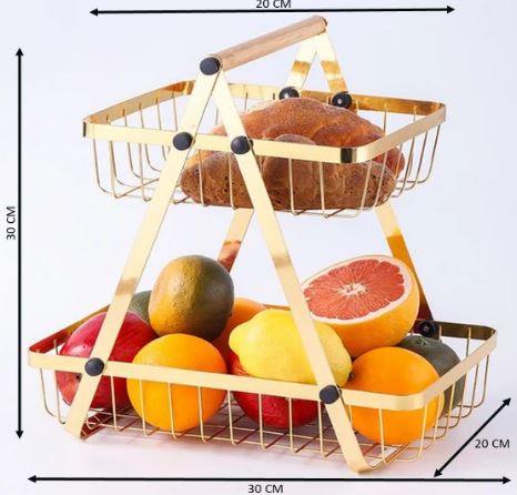 - Fruit holder total height: 30 CM, Upper Basket: 20x20 CM; Lower Basket:30x20 CM.