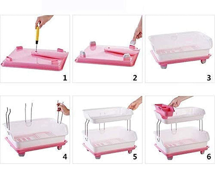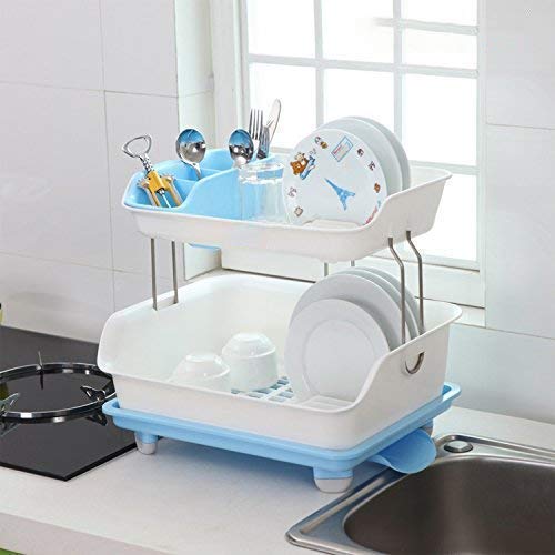 This special crockery holder comes along with the dish rack, which can hold cooking spatulas, spoons, forks, knives, glasses and other crockery items. They are also perforated at the bottom to get rid of excess water from the utensils. It is made of strong, durable quality of plastic that makes the product long lasting, 2-tier kitchen rack is easy to assemble within minutes. The ergonomic design also makes it easy to clean and store. The main body of the unit provides ample space for storing. high-quality matte non-slip safe and harmless PP material, soft material, not easy to break. It ventilated bottom allows water to drain away, keeps your cutlery and utensils dry, clean and organized.