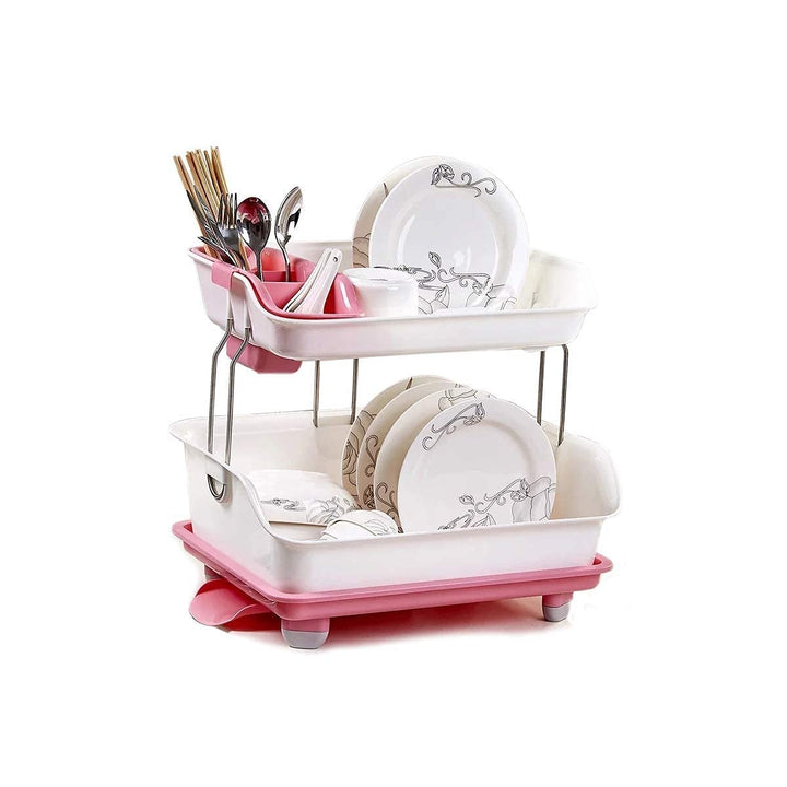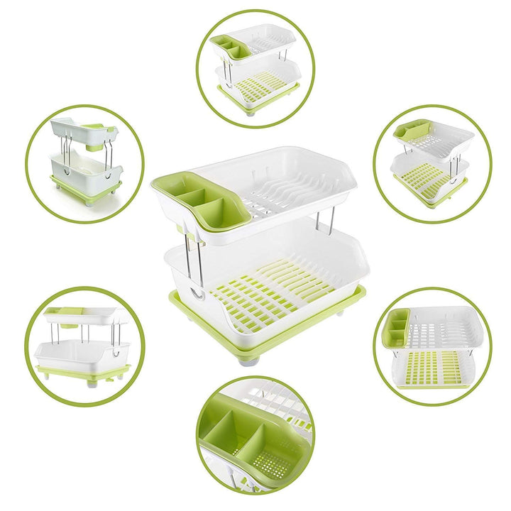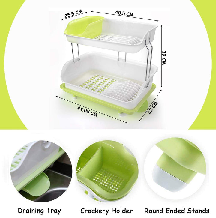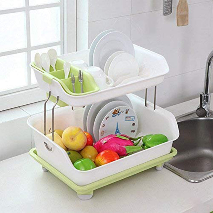 2 Tier Dish Drying Rack, Utensil Holder for Kitchen Counter, Durable Plate Rack With Drainer, Large Plastic Basket with Tray, Multipurpose Kitchen Drainage Storage Rack, Kitchen Utensils Organizer, Portable Kitchen Storage Rack
