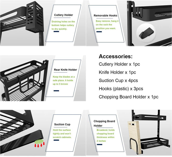 - Non-slip Suction Cups Design: Non-slip suction cups at the bottom of the rack hold the surface tightly and won’t scratch the countertop.