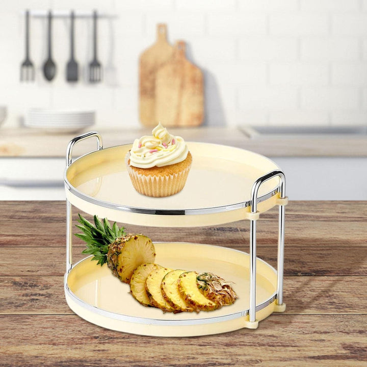 - This 2 Tier Round Serving Stand in Beige is perfect for showcasing your culinary creations.