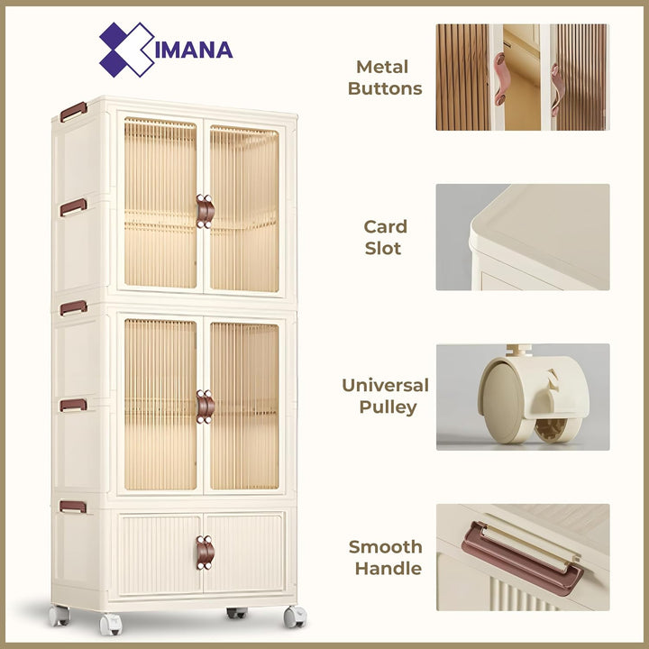 - Transparent double doors with smooth surface for easy cleaning. Great for storing baby products.