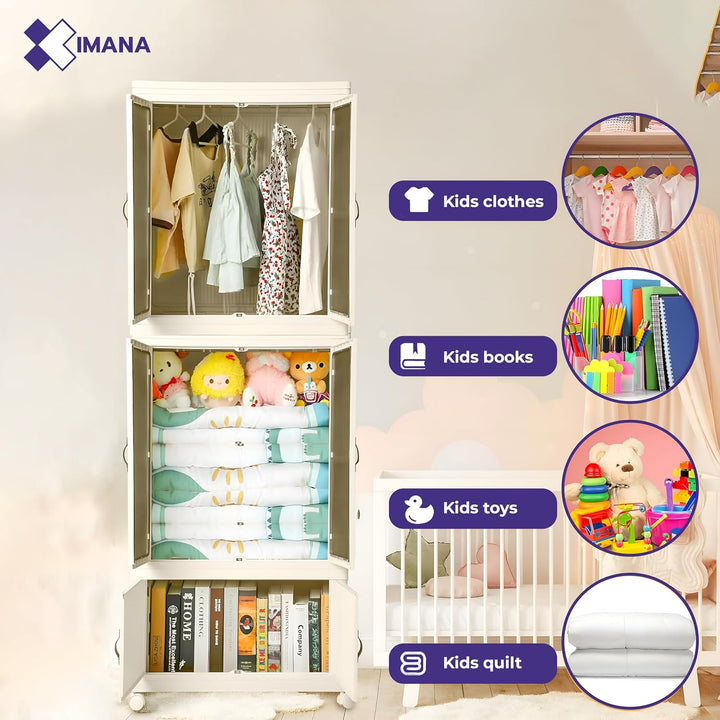 3 Layers Stylish Multi-Functional Storage Cabinet & Childrens Wardrobe, Portable Closet for Kids