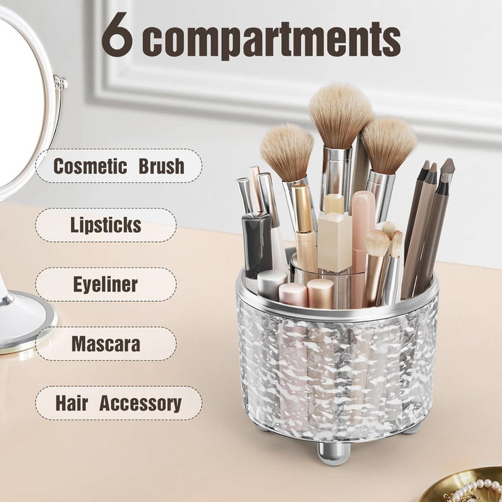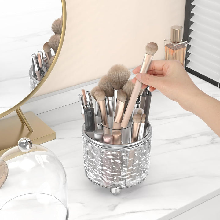 - 【Newest Swivel Makeup Brush Holder】Glacial grain design, clean and translucent, more texture, the Swivel makeup brush holder is made of durable Premium plastic, which ensures its durability and security from injury and breakage. And the smooth surface and rounded edges won't cause any harm to your desk or yourself.