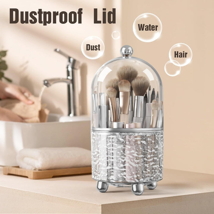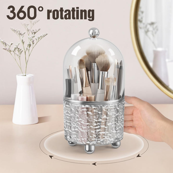 360° Rotating Makeup Brush Holder Organizer with Lid