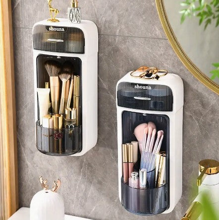 - This makeup organizer can be placed in the bathroom for skincare and makeup brushes, in the bedroom for skin care products, or on a vanity to store makeup.