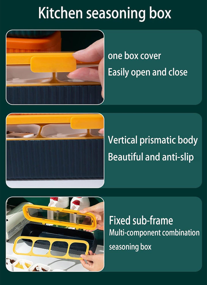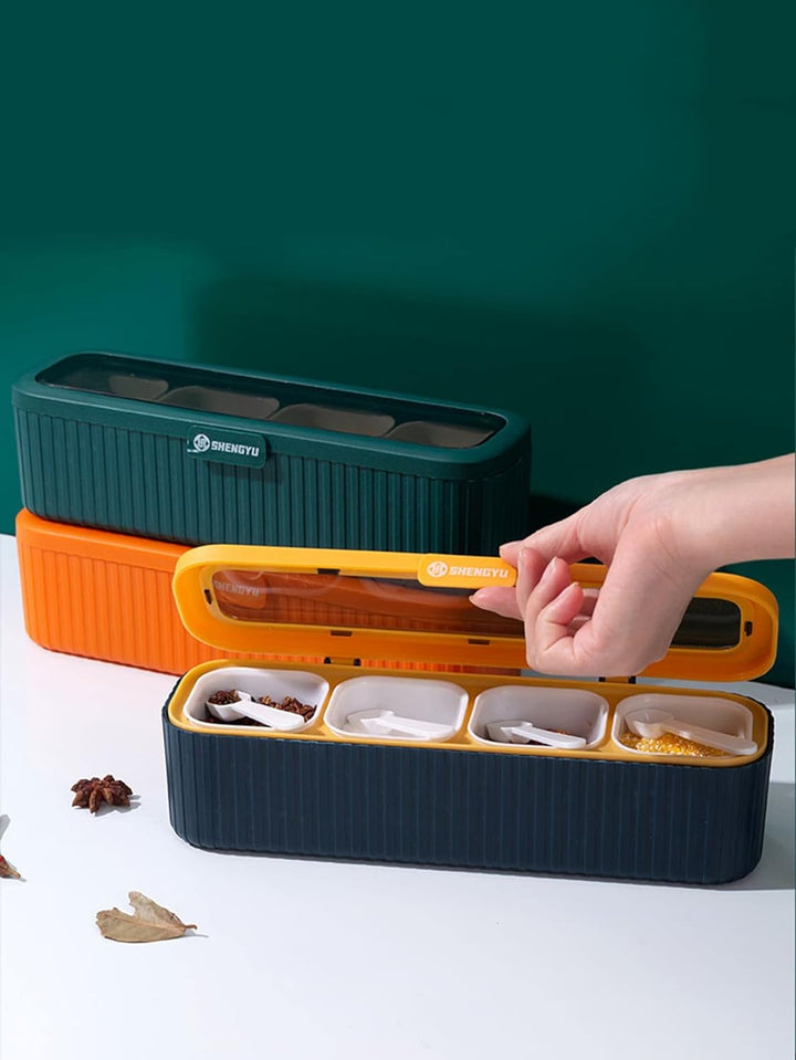 - Portable high-grade seasoning box. The spice rack is designed with a cover. Four spice boxes share the same cover.