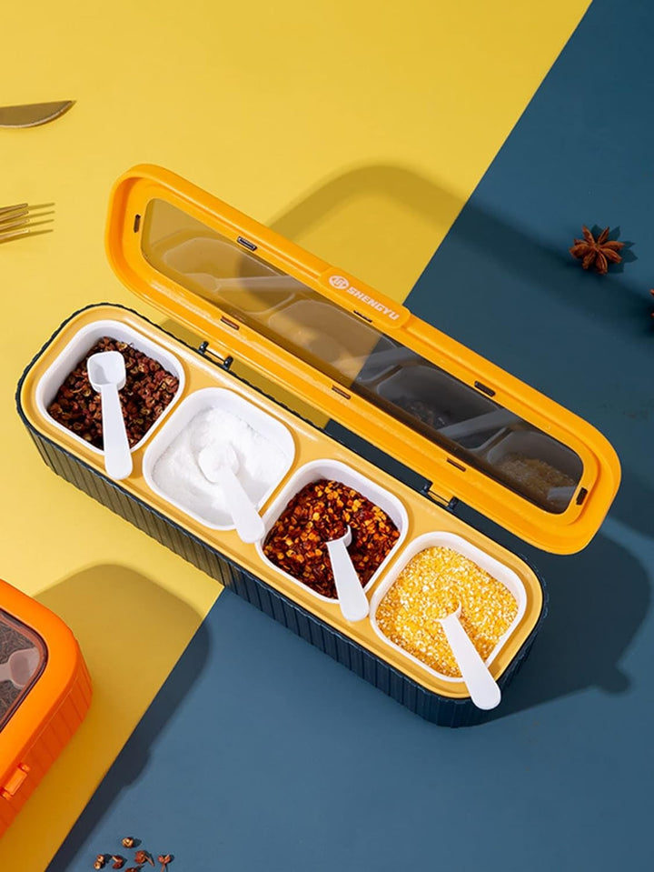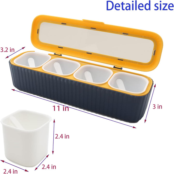 4-Compartment Seasoning Jar Storage Container, Kitchen Storage Container For Storing Spices Salt Sugar Pepper