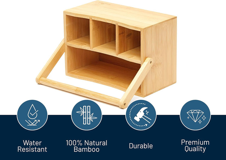 4 Compartment Wooden Cutlery Condiment Sauce Napkin Holder Storage Caddy Box