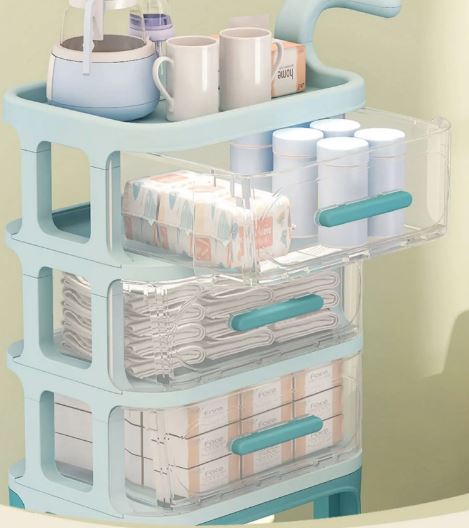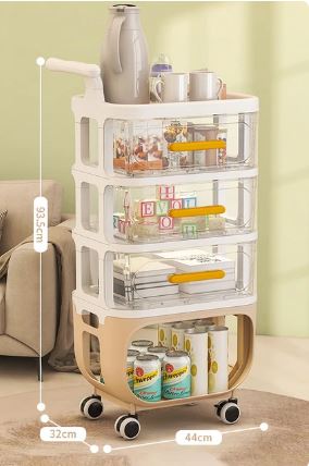 4 Layer Cart Bedside Mobile Snack Storage Rack, Waterproof Freestanding Storage Cabinet