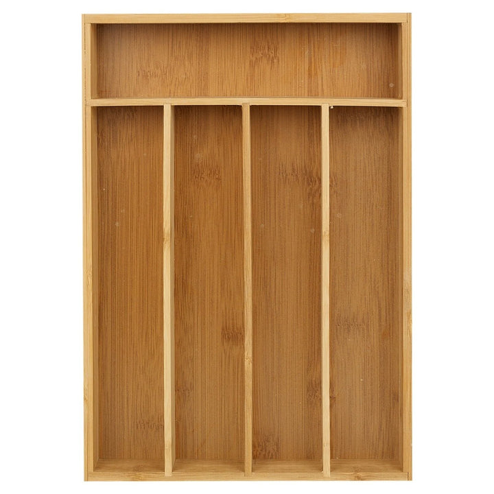 5 Compartment Bamboo Cutlery Tray, Kitchen Drawer Utensils Holder, Wooden Knife Fork Spoon Organizer Case