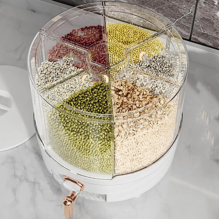 6kg Rotating Rice Dispenser, Storage Container with 6 Compartments Holder for Rice and Beans