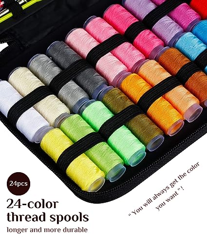 - The sewing kit bundle comes with all in one accessory that has scissors, thread needles, measuring tape, buttons etc and comes with a carrying case. It can be used in many occasions such as mending your bags or clothes.