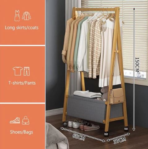 Bamboo Wooden Clothes Stand, Clothes Rack with Storage Shelf