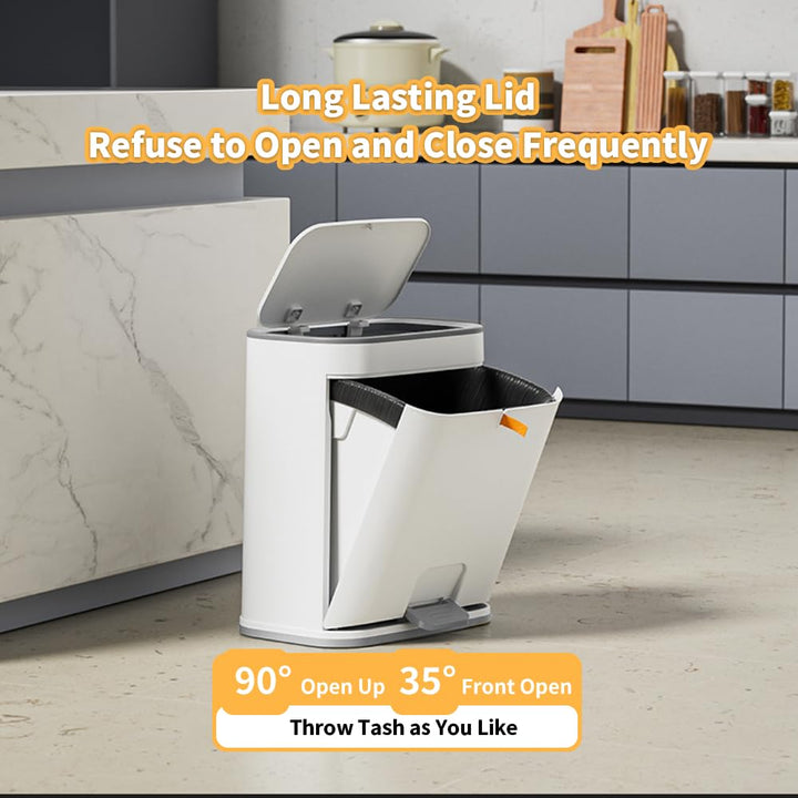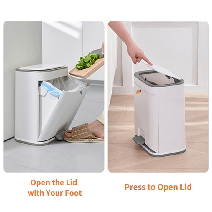 - The trash can adopts a double-opening lid design.It can be opened by foot and opened by pressing.