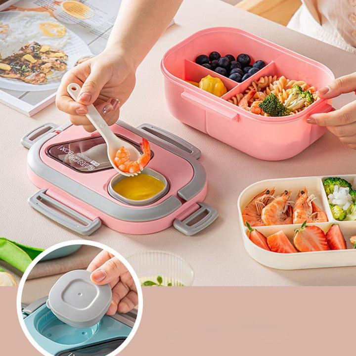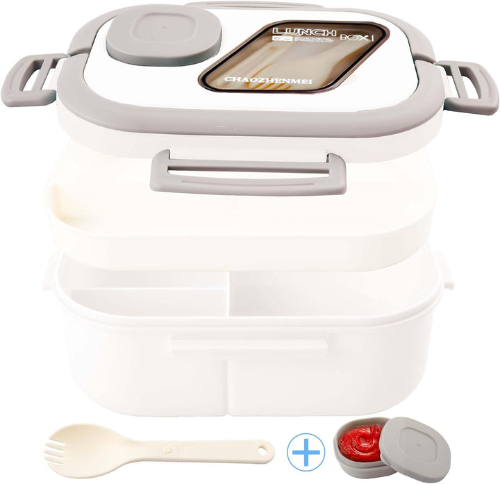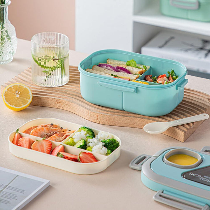 Bento Lunch Box, Salad Container, Bento-Style Tray For Toppings, Container For Dressings, And Built-In Reusable Fork And Knife