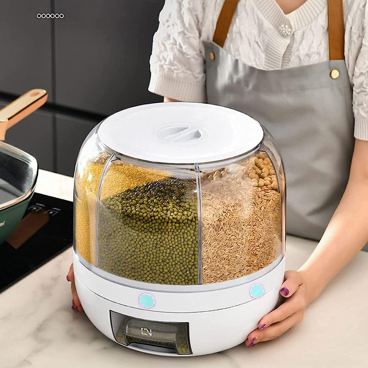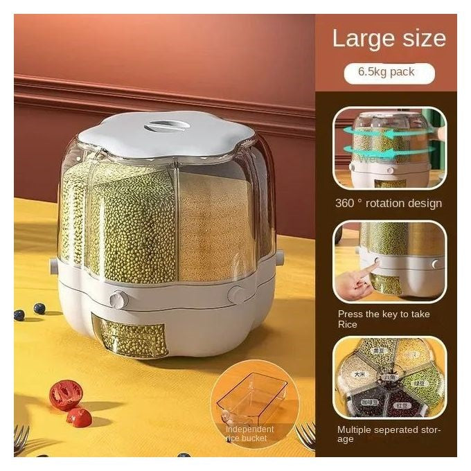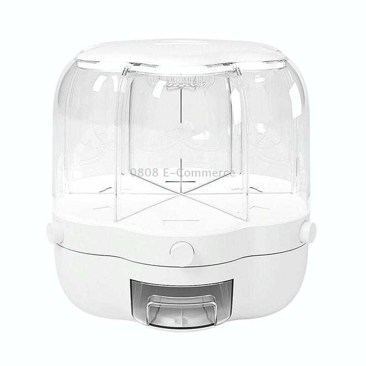 Cereal Rice Bucket Dispenser 6 Grid 360° Rotating Waterproof And Moisture-Proof Rice Storage Box For Kitchen, White