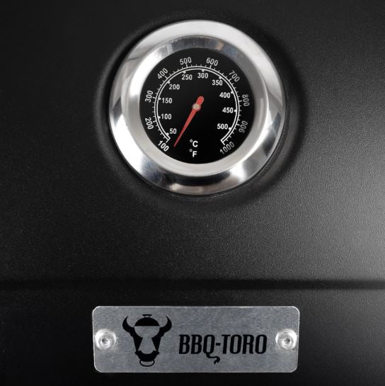 Charcoal BBQ Grill Trolley with Lid, Coals Tray Height Adjustable with thermometer