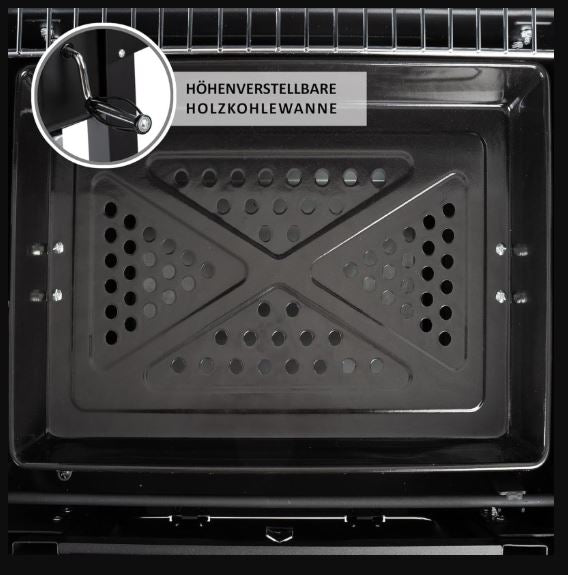 - Thanks to the crank, you can comfortably vary the height of the charcoal bowl and adapt it to your barbecue project.