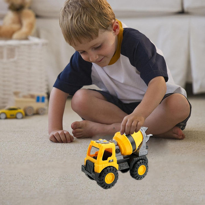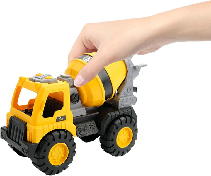- Bright colors, simulated construction vehicle shape and working principle, cement mixer toys can help babies develop thinking ability, hand-eye coordination and cognitive process.