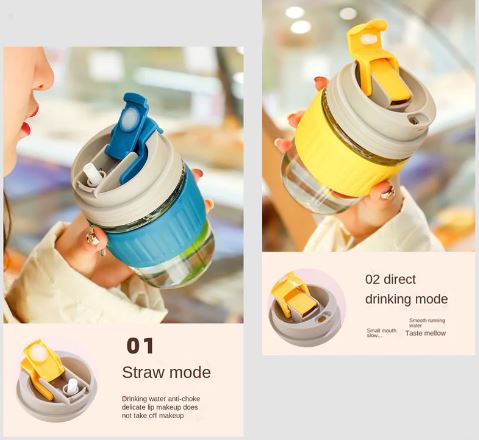 - The lid is designed for 2 functions, pouring through spout and sucking with PP straw.