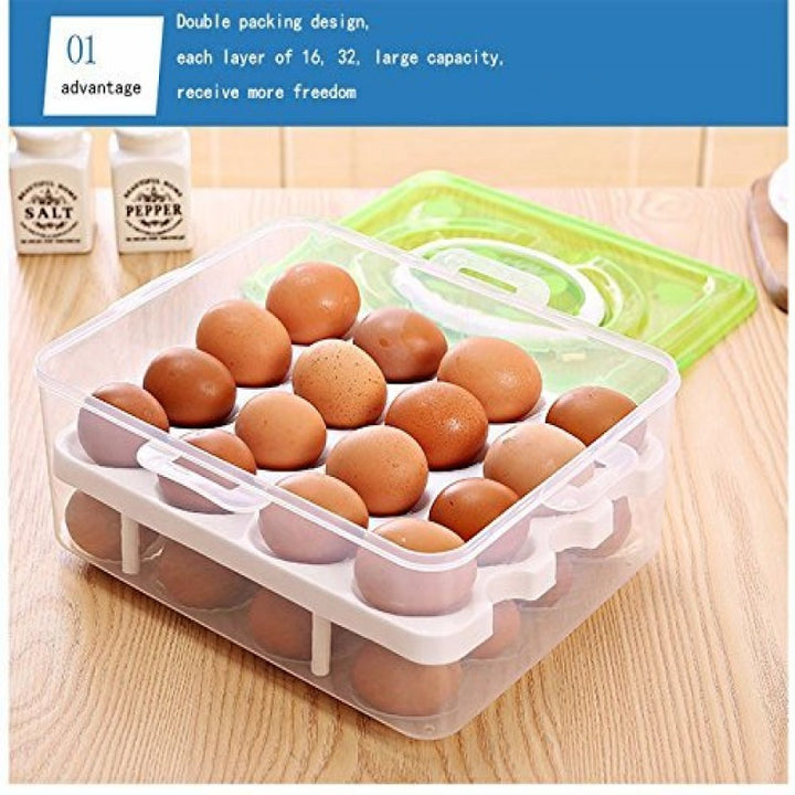 - Perfect Storage Box to store eggs safely as well preserving their freshness. It can accommodate 32 Eggs (In 2 Layers) at a time.