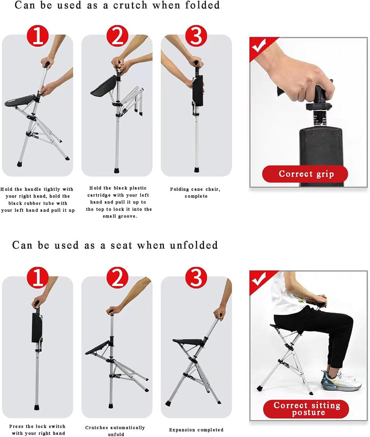 Elderly People's Crutch Stool, Non-Slip, Lightweight, Multifunctional Cane Chair
