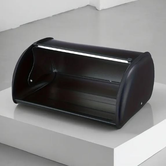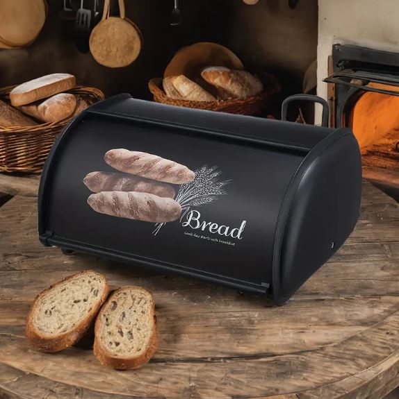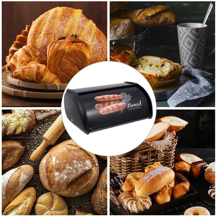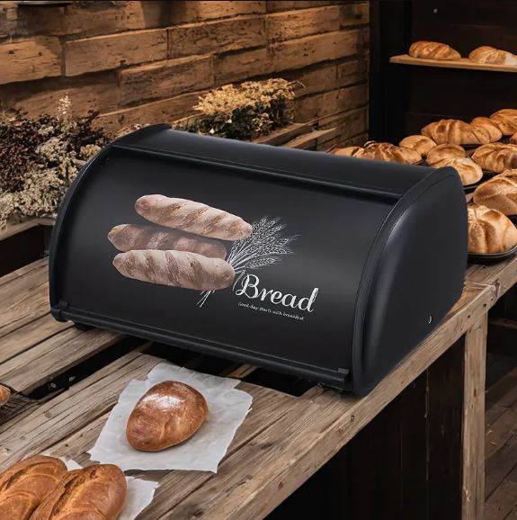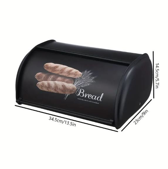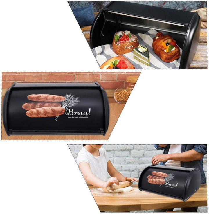 Elegant Black Bread Box, Rectangular, Reusable Iron Container with Flip-Top Lid, Perfect for Fresh Breads and Pastries