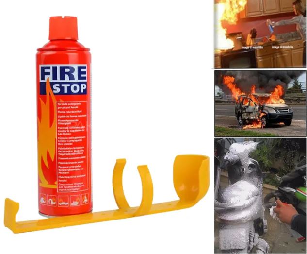 - Fire Stop Portable Foam Spray Fire Extinguisher is a handy emergency safety tool designed to instantly suppress small accidental fires before they spread.