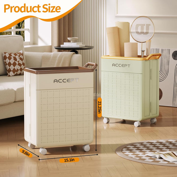 - [Large Capacity]: This home storage basket with wheels provides ample storage space for yoga mats, sports equipment, toys, badminton and more, making it versatile and practical for various storage needs.