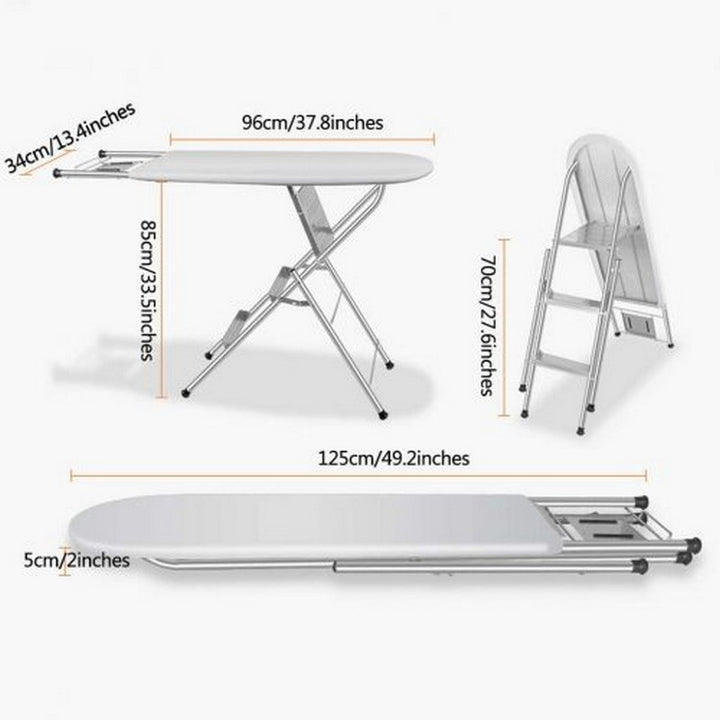 - Folding Ironing Board Multi-functional with 3-Steps Ladder