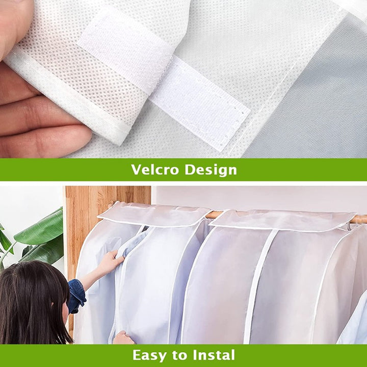 - Material -- washable semi-transparent garment cover, moisture-proof, dust-proof, and odorless. keeps your clothes fresh and clean, can be used for a long time. After a period of use, just wipe with clean water to wipe off the dust.