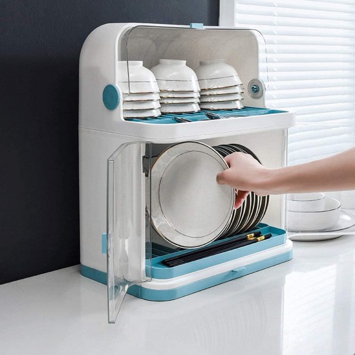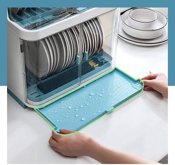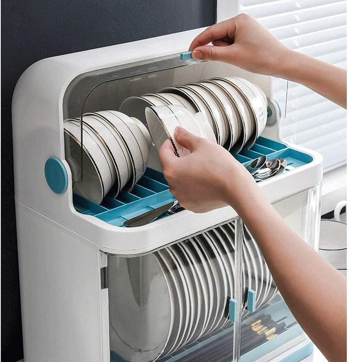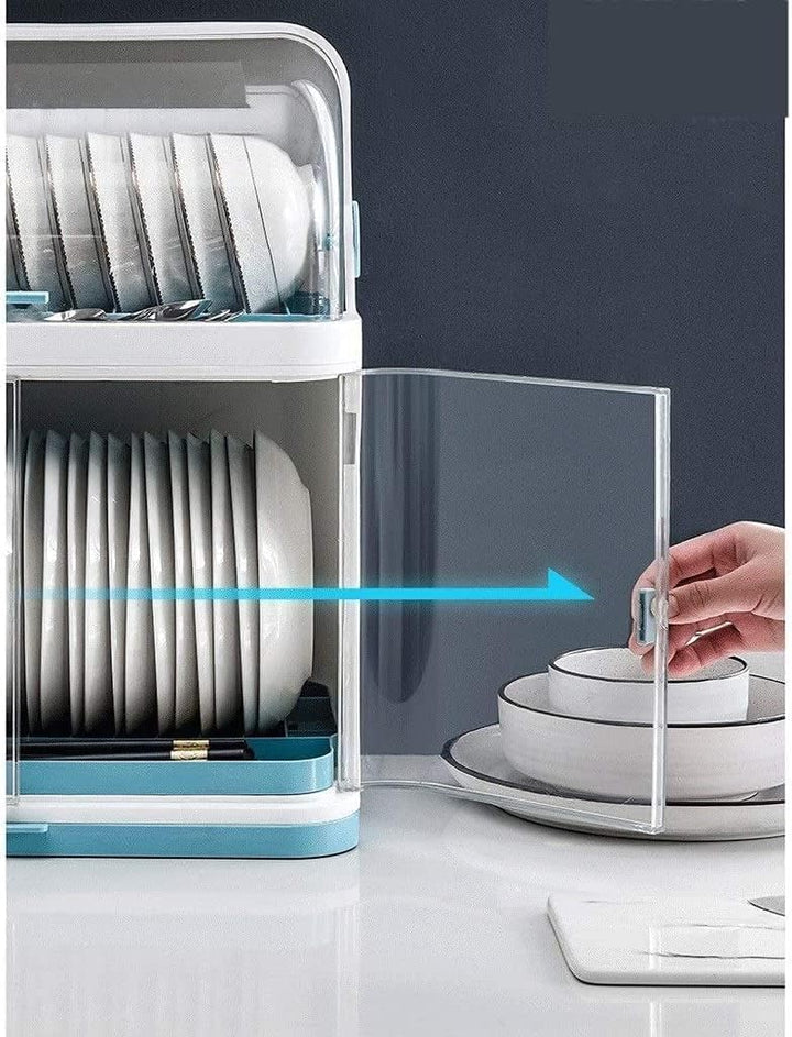 Kitchen Dish Drainer Plastic With Lid Drainer Rack Drip Tray Cutlery Holder - Covered Dish Rack 2 Layer Dust-Safe