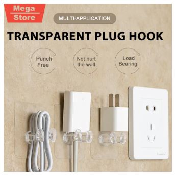 Pack Of 5 Wall Storage Hook Punch-Free Power Plug Socket Holder - Kitchen Adhesive Hanger Bathroom Office Hooks Organizer - Nail-Free Paste Non-Marking Waterproof Stickers