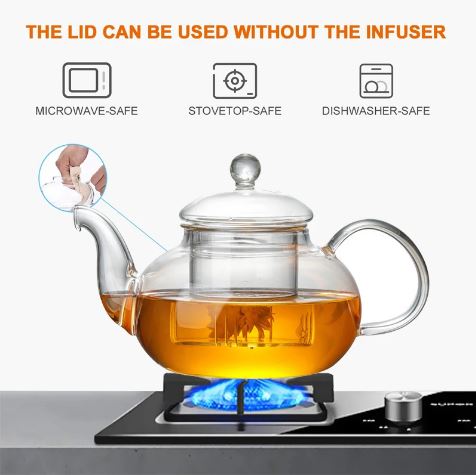- STOVETOP SAFE & MICROWAVABLE FOR YOUR CONVENIENCE - Because this tea kettle is all clear borosilicate glass (including the tea strainer), brewing up a cup of hot tea has never been easier. Simply fill with water and pop it in the microwave to boil your water. This teapot eliminates the need to boil water separately and lets you do everything right in one teapot.