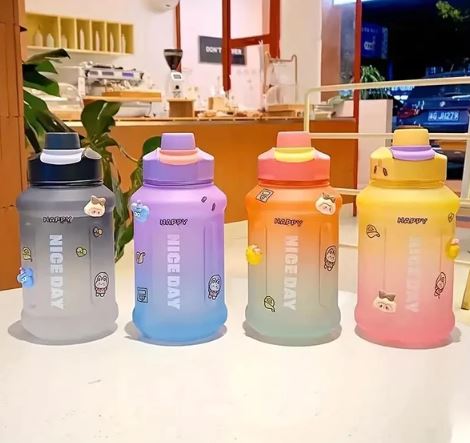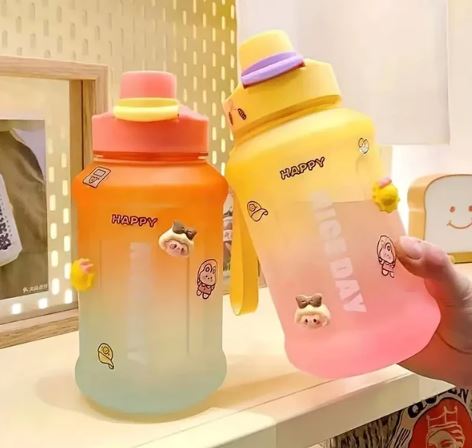 - Stay hydrated and stylish with this Gradient Color Large Capacity Water Bottle with straw.
