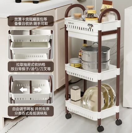 Home Storage Shelf Storage Trolley With Movable Pulley Kitchen Islands With Carts