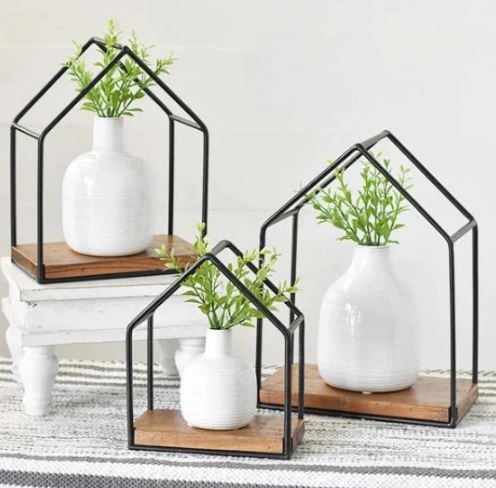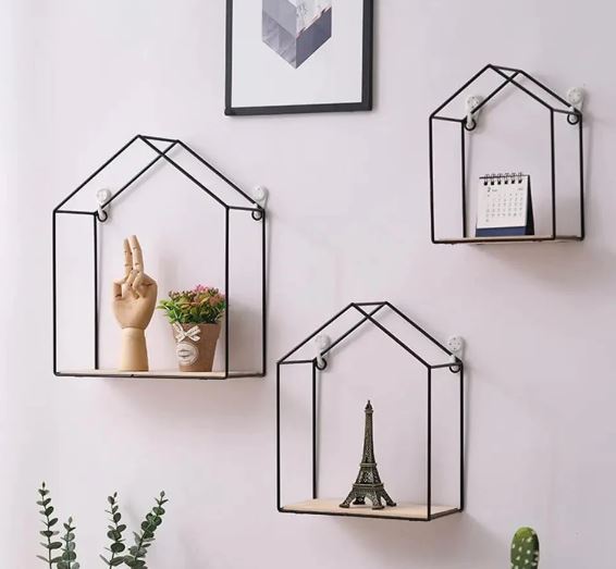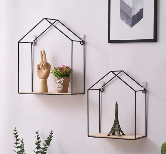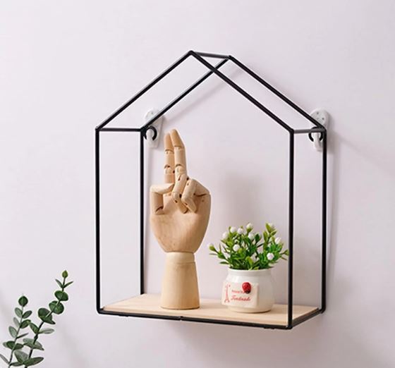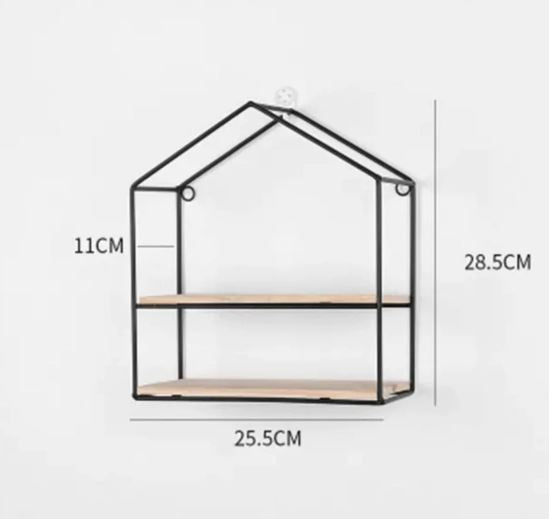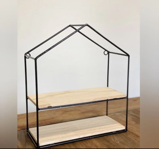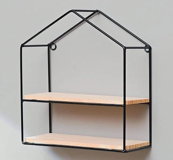 - Overall, the "Hut Style Wall Shelf" offers a unique and eye-catching design, combining the durability of metal with the warmth of wood.