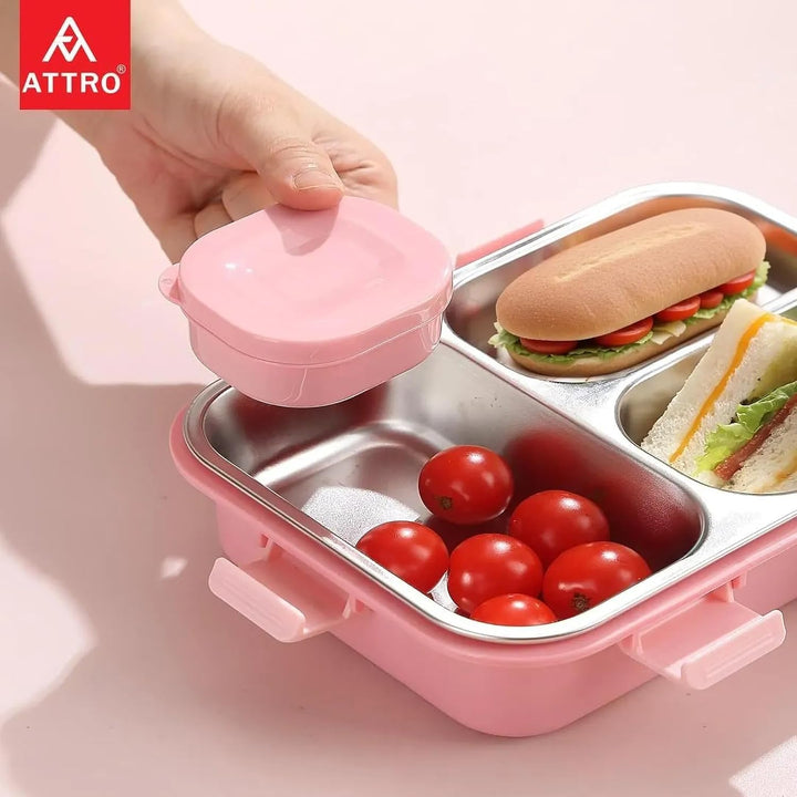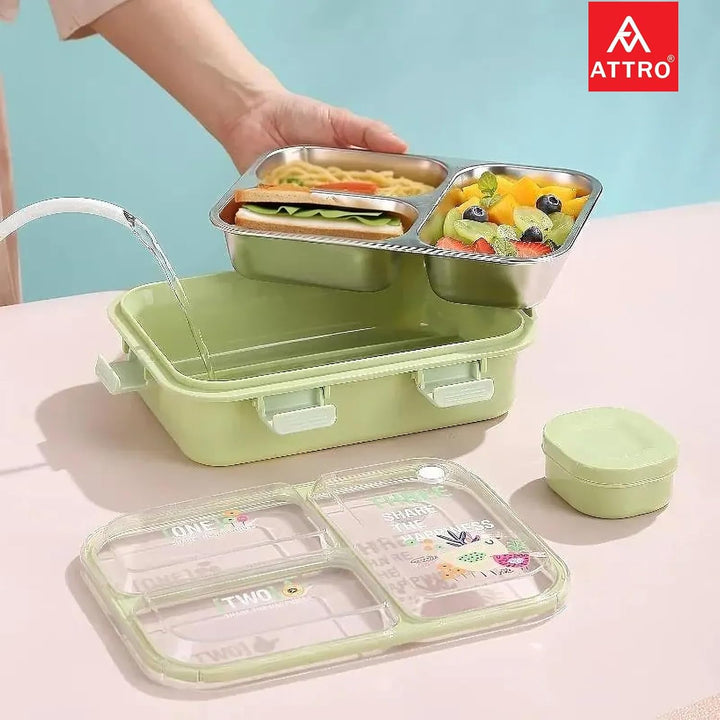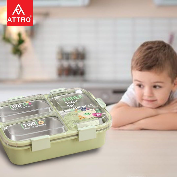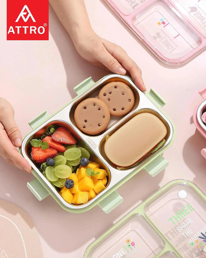 - Kids Lunch Box features 3 inner stainless steel compartments that allow you to pack different types of food without them mixing.
