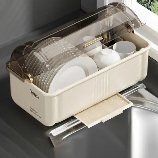 - 【Design】Transparent cover, hygienic dustproof, easy assembly, intimate drainage, easy cooking, dishes and other household utensils, easy to store large capacity storage Efficient use in limited space.